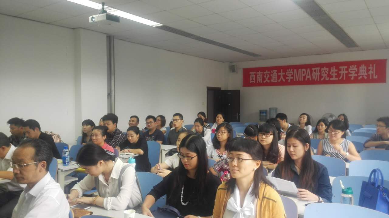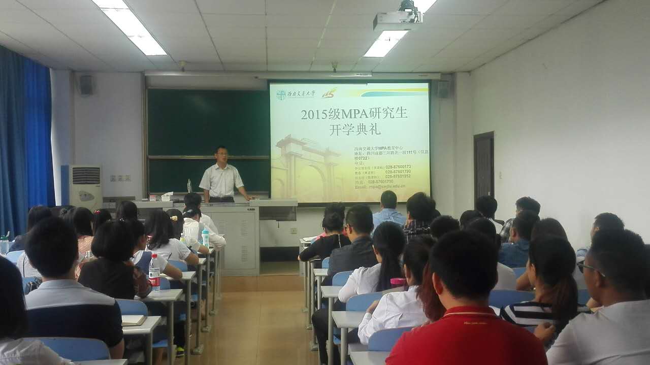 2015年9月12日上午,新葡的京集团35222vip公共管理与政法学院2015级公共管理硕士(MPA)新生开学典礼在逸夫馆4222教室隆重举行。学院陈光院长,王永杰书记,MPA教育中心主任、雷叙川副院长,学生工作组组长余小英老师,严敏老师等出席了本次开学典礼。开学典礼由MPA教育中心办公室主任李明老师主持。