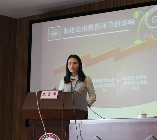 新葡的京官网2014级法学硕士研究生罗娟向论坛提交《全面依法治国背景下大学生思政教育中法治意识教育强化路径研究》一文,在依法治国的大背景下,通过思政教育中法治教育不足的表象深层次地挖掘了导致这一现象出现的原因,并进行相应的对策分析。经过专家的提议,罗娟同学在论坛上做10分钟的主题发言。