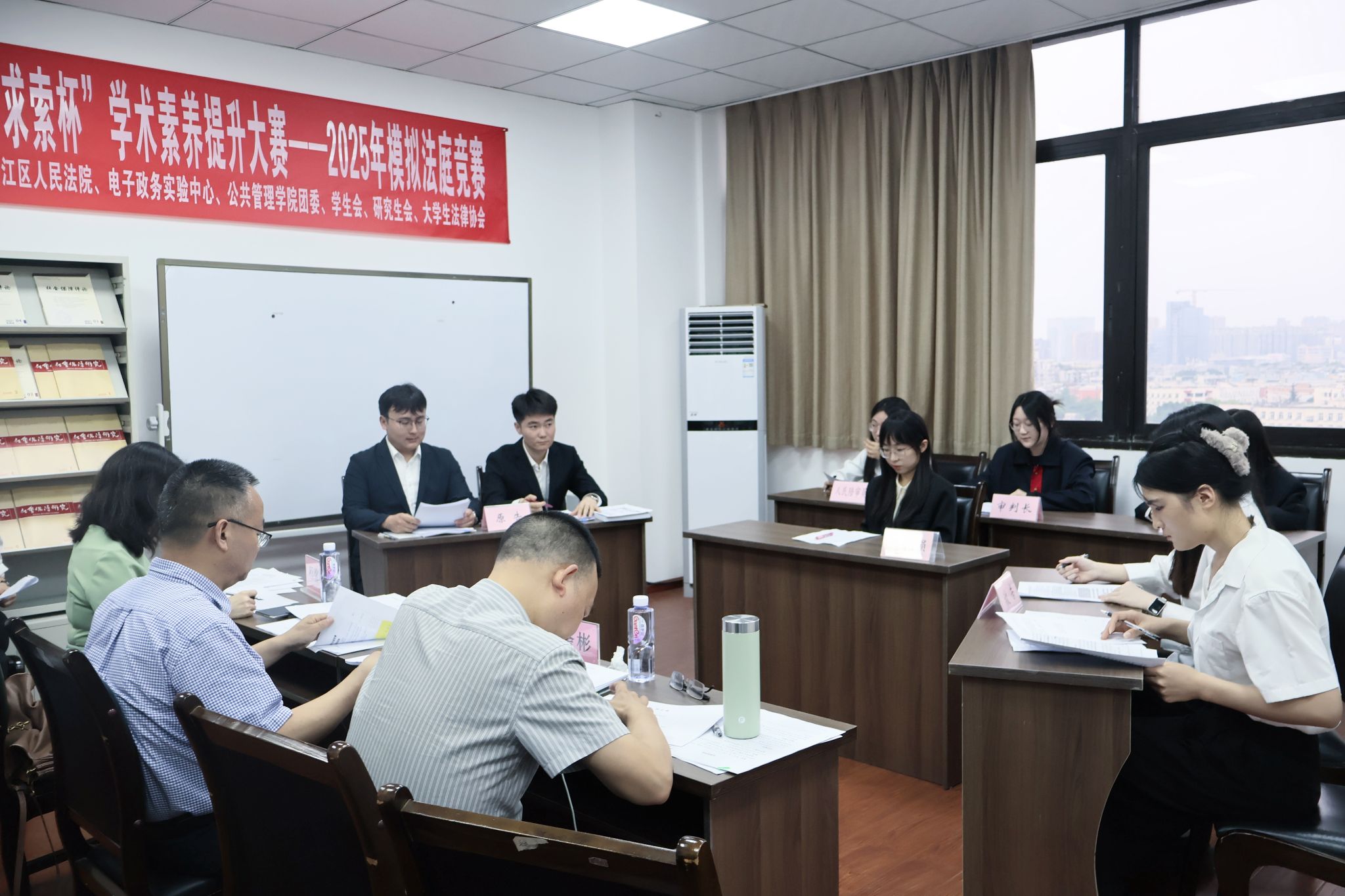 本次竞赛案例由成都市青白江区人民法院精心遴选和改编。经过初赛的激烈角逐,11参赛团队中的8支参赛团队凭借扎实的法律知识储备、严谨的逻辑分析能力和优秀的司法文书撰写水平脱颖而出,晋级复赛。复赛阶段,晋级团队分为A、B两组,分别在01112和0113教室展开循环对抗赛。法学系徐兴祥、程馨桥、朱奎彬三位老师组成A组评审团,杨成良、唐建华、杨道现三位老师担任B组专家评委,全程对赛事进行专业评审。
