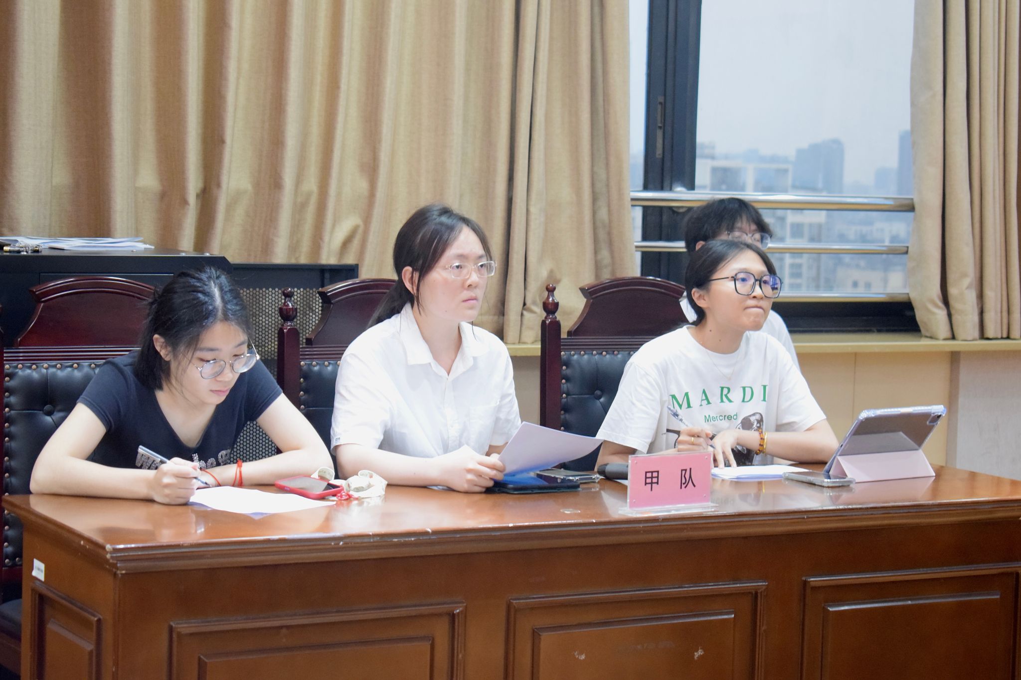本次进入复赛的队伍共有七支,比赛分为上下两场,在两个分赛场中同时展开。在01417赛场,首先对阵的是“好东西队”和“西天取经队”。“好东西队”以莲花社区的“外卖小牛哥”为例,以当代外卖骑手职业热潮为背景,分析了骑手参与社区治理的特殊模式;其后,“西天取经队”从绿色经济政策引出了自己的案例内容,聚焦云华社区,对绿色经济驱动社区适应性治理的实践路径展开研究,以网红社区为锚点探讨“碎片化-整体性”结构下的基层治理重构,双方深入地展开探讨。第二组出场的是“专业团队”,他们聚焦老旧社区治理难题,分析从“稀烂街”到西南街的转变过程中,多元主体协同治理的运营模式和经验。赛场上队员们唇枪舌剑,妙语如连珠迸发,巧思似泉涌不绝。提问环节中,评委老师从案例文本结构和独特性两方面发起提问,并据此提供了宝贵的专业意见。