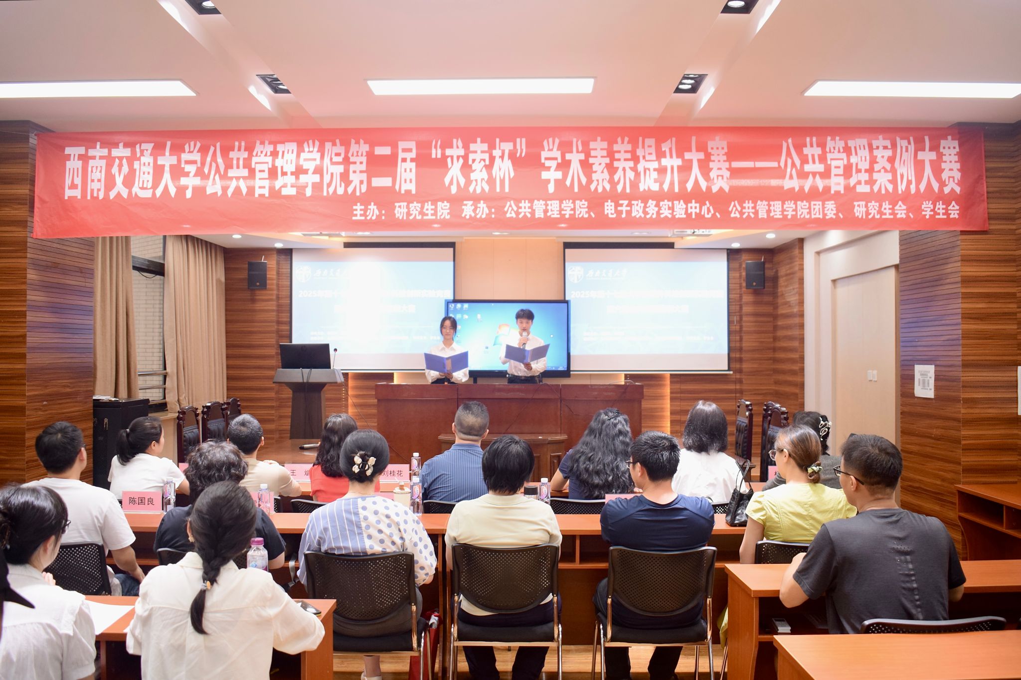 为坚持学思用贯通、知信行统一的理论学习方法,培养学生理论与实践相结合的能力,新葡的京集团35222vip于2025年5月22日晚7时,在九里校区零号教学楼新葡的京集团35222vip第二届“求索杯”学术素养提升大赛之公共管理案例大赛复赛。本次活动由新葡的京集团35222vip研究生院主办,新葡的京集团35222vip、电子政务实验中心、新葡的京集团35222vip团委、学生会、研究生会承办。出席本场活动的嘉宾和评委老师有:新葡的京集团35222vip副院长彭川宇,本科教学主管邓君韬,行政管理系刘桂花、杨建、徐换歌、陈国良,应急管理研究中心王振辉,公共政策系王斌,城乡公共治理系林晶晶、严敏、赵放、温雪梅、杨再苹老师,电子政务实验室赵巍老师。