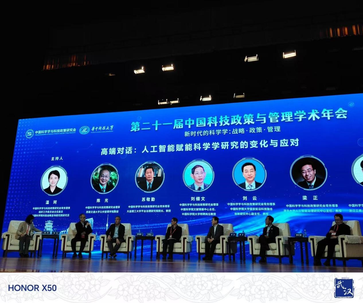 新葡的京官网陈光教授以中国科学学与科技政策研究会理事、公共管理专业委员会主任身份参加年会,并主持公共管理分论坛学术会议、报告论文《中美科技竞争前景预测:发展与安全》,参加大会“高端对话”《人工智能赋能科学研究的影响与应对》,做《人工智能是把双刃剑》的报告。