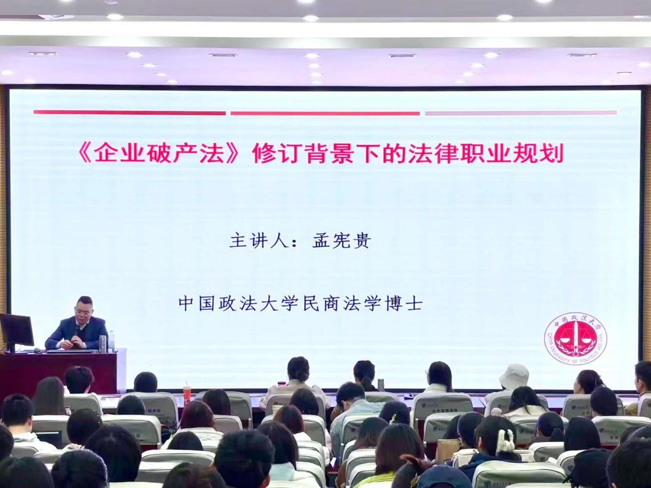 2025年12月11日15点,新葡的京集团35222vip九里校区零号教学楼0231教室座无虚席,《企业破产法》修订背景下的法律职业规划专题讲座在此顺利举行。中国政法大学民商法学博士、西南交大-徐和徐破产法学研究与人才培养基地研究员孟宪贵受邀主讲,以鲜明的结构、鲜活的案例,从职业选择到法律思维,再到破产法制度未来走向,为同学们打开了一扇具有无数可能性的大门。