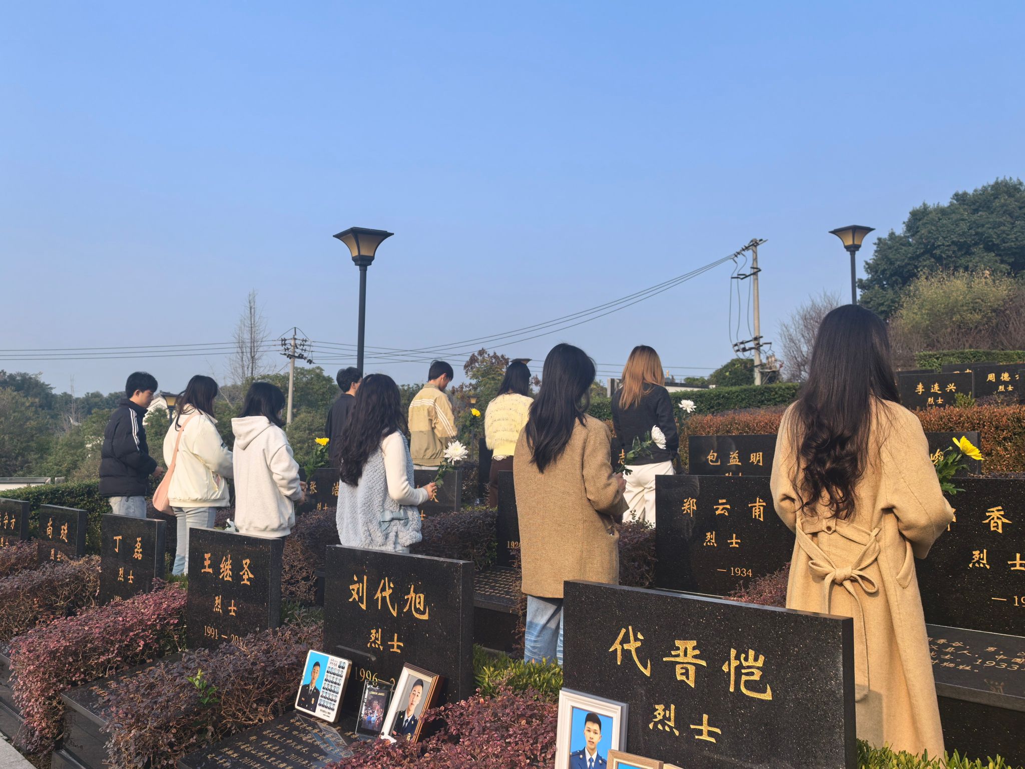 与此同时,硕士公管安工第二党支部的成员们怀着崇敬的心情来到成都烈士陵园。在庄严肃穆的烈士纪念碑前,全体党员整齐列队,向为民族独立和人民解放事业英勇献身的烈士们鞠躬致敬、敬献鲜花,表达深切缅怀之情。
