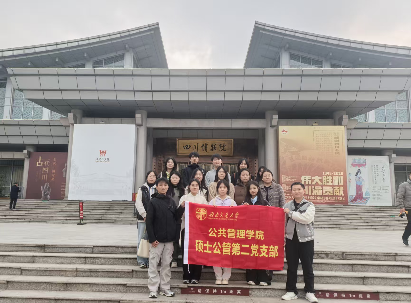 在四川博物院抗战专题展展厅,硕士公管第二党支部的成员们通过一件件珍贵文物、一幅幅历史图片和详实的文献资料,系统了解了四川人民在抗日战争中的伟大贡献。从川军出川抗战的英勇事迹,到后方民众支援前线的感人故事,展览全方位展现了四川作为抗战大后方所承担的历史重任和付出的巨大牺牲。