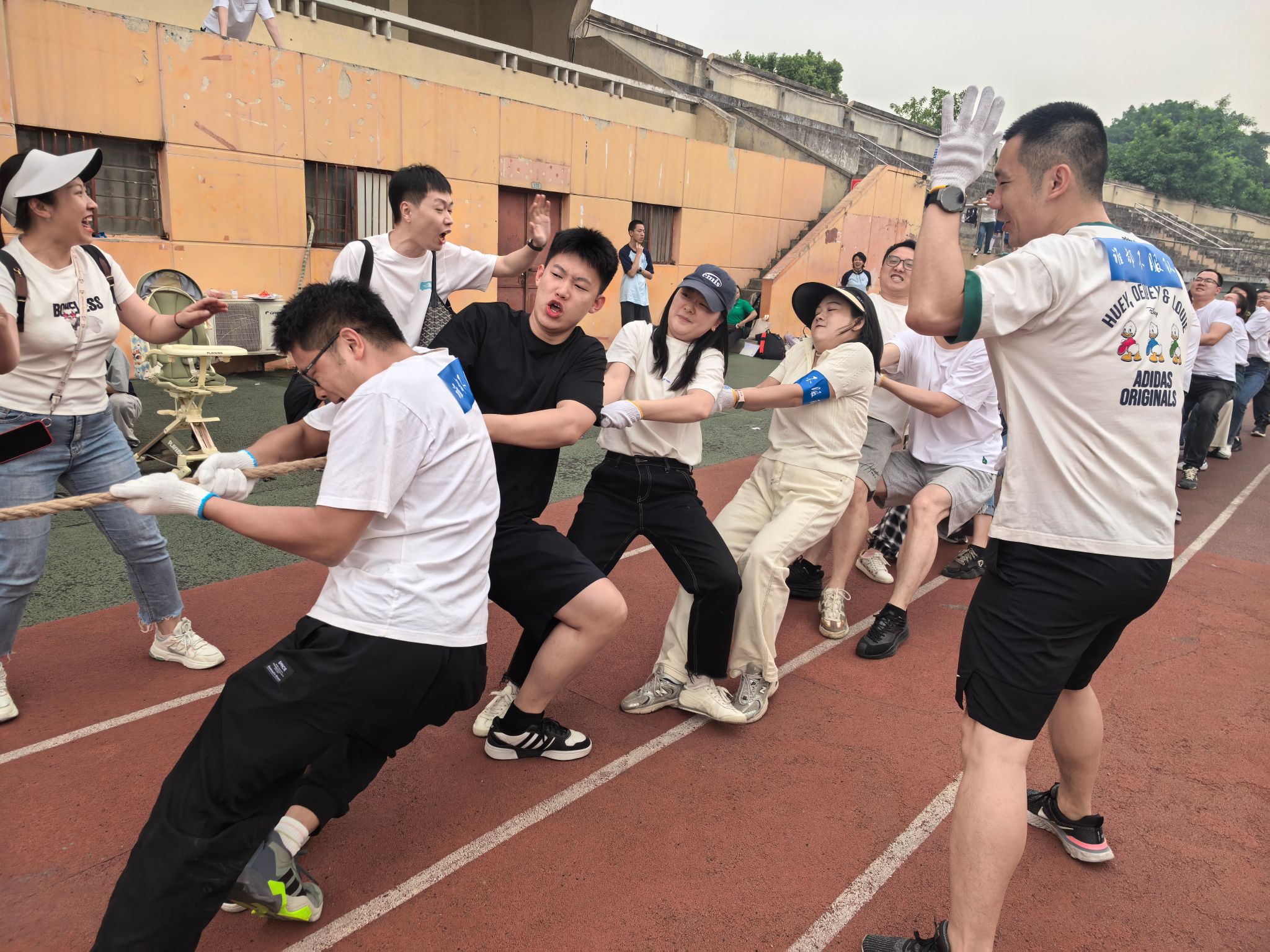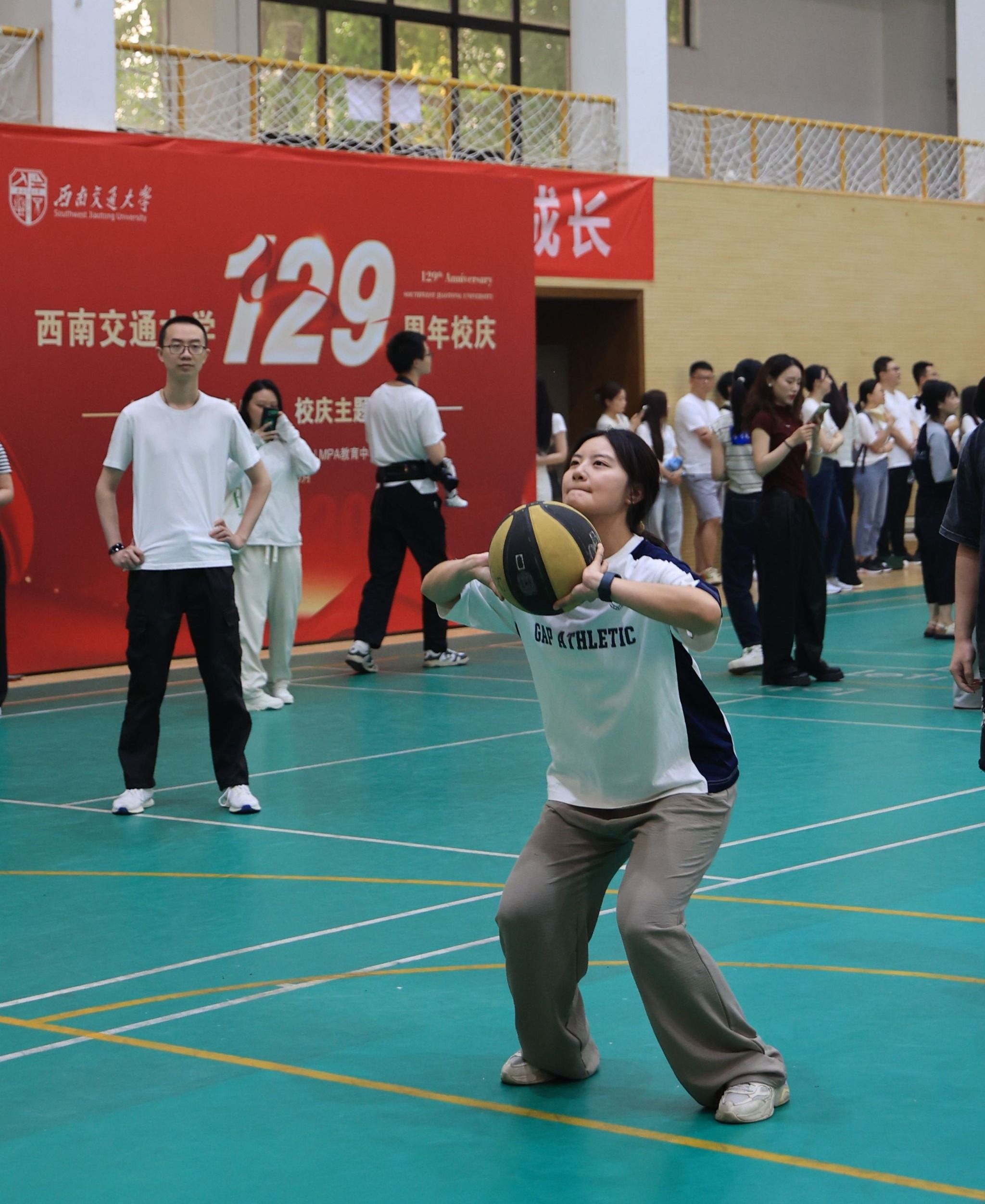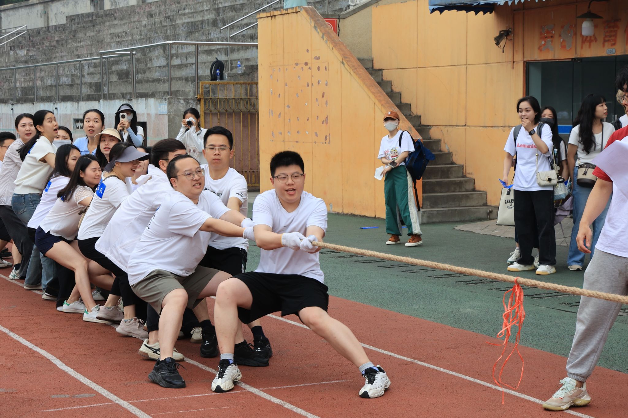 此次校庆主题日活动场地分布在足球场和詹天佑体育馆,多个趣味项目依次开展。2024级MPA学生组建的四支队伍(学习是人生大事队、谁都不服队、一路生花队)及校友代表队、教工代表队共六支队伍在各赛场上奋力拼搏。足球场作为活动的主场地之一,“蛇舞递辉”接力赛和“蛇曳争锋”拔河赛在这里激烈角逐。